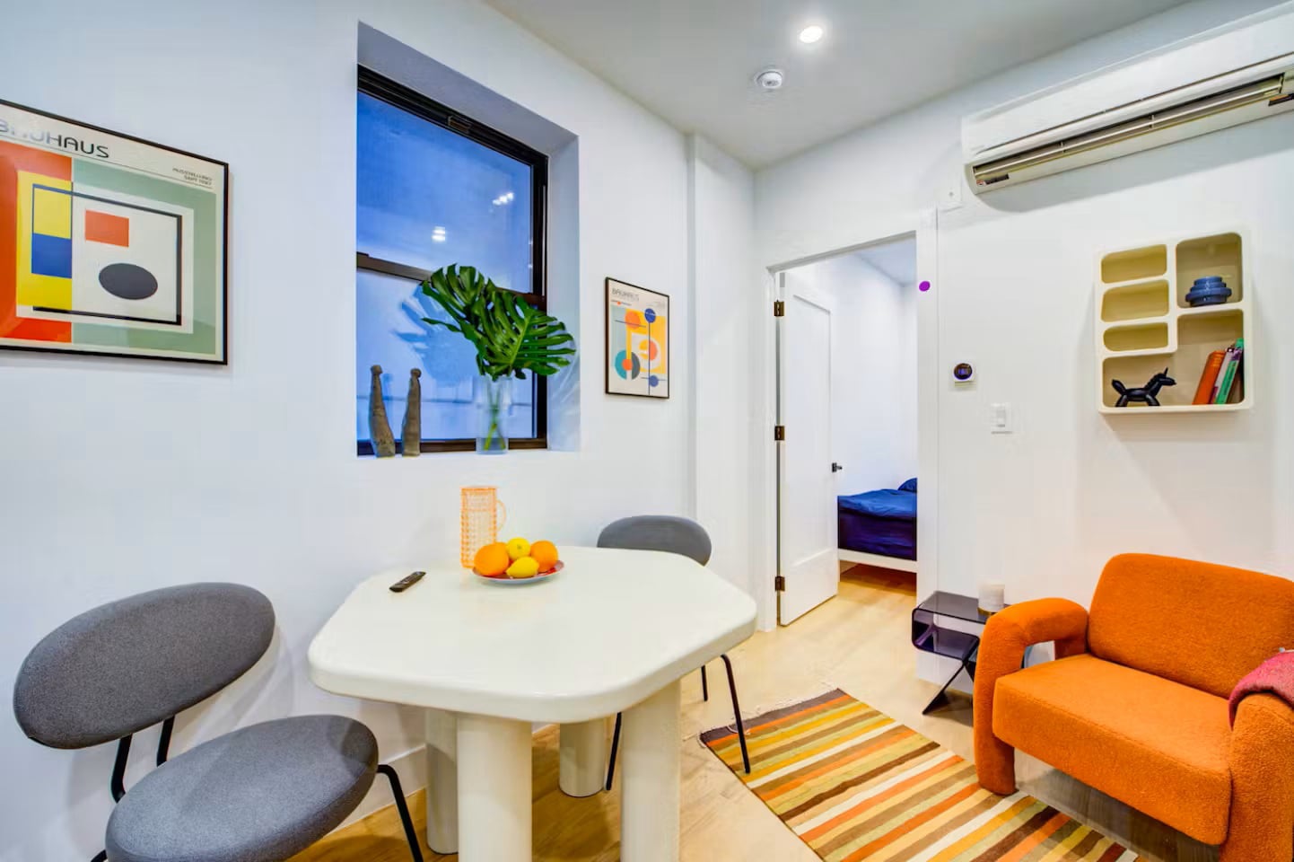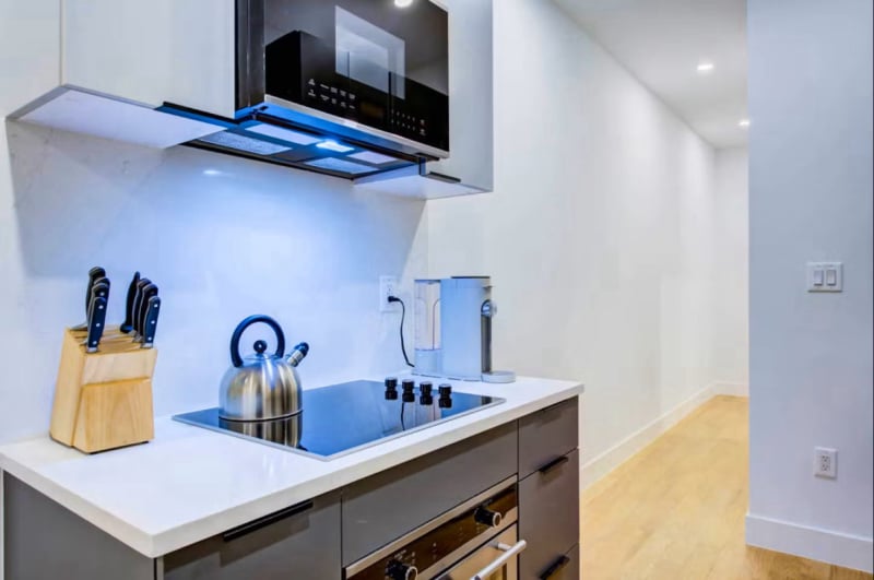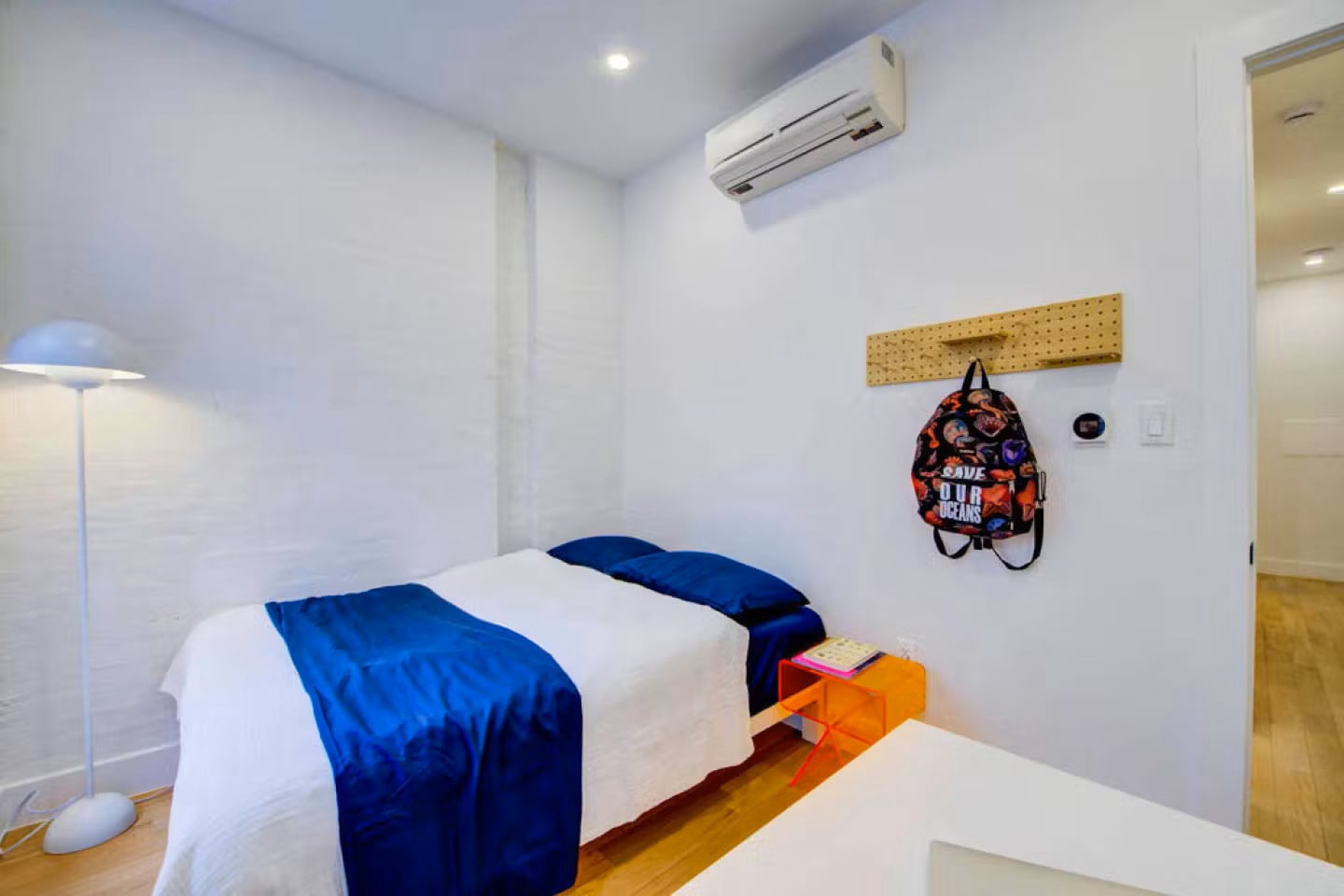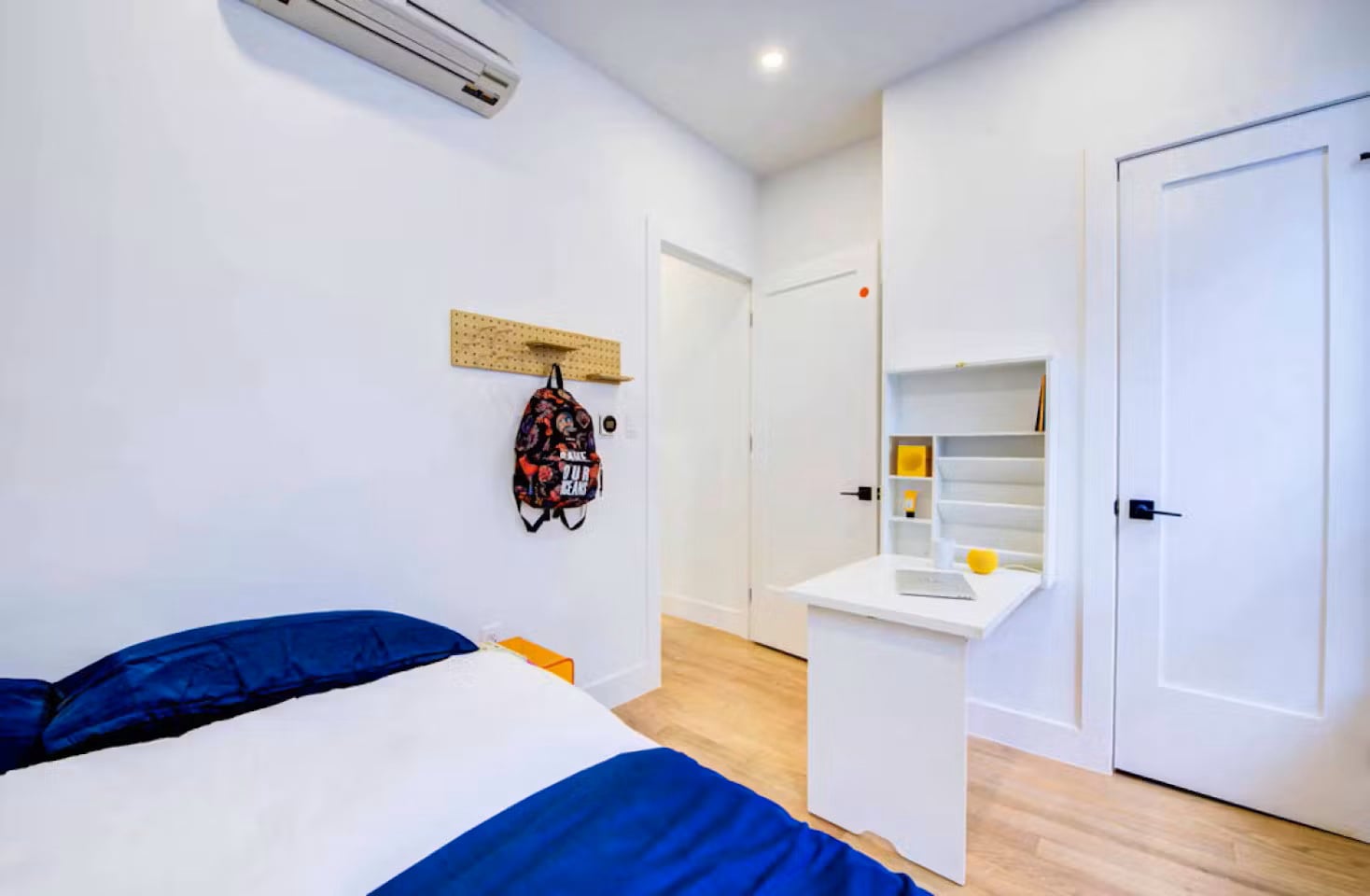 All bedrooms are thoughtfully designed and place equal importance on comfort, quality, and aesthetics. Each bedroom features a convenient fold-out wall desk that you can hang back up when you’re done with work for the day. Don’t mistake its adaptability as an economy–it offers ample workspace and shelving for storage or touches of personal decor. On-trend acrylic nightstands await your bedside essentials. All bedrooms are equipped with climate-control split unit systems so that you can adjust the temperature of your room according to your preferences. The following amenities and services are included: