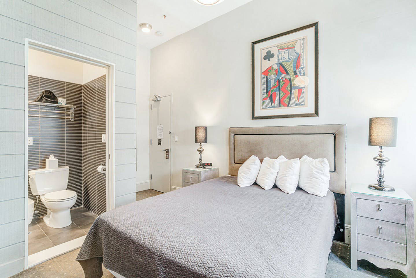 1. The master room is a unique space. It feels more like a studio, with a private entrance from the hallway. The resident will not share the common areas, such as the bathroom and study desk with other occupants. It’s spacious, giving the residents the most luxurious living experience. It features a queen-size bed, ensuite bathroom, study desk, smart TV with a streaming device, mini-fridge, microwave, coffee maker, and kettle. This room is a perfect fit for those looking for ultimate privacy and comfort.