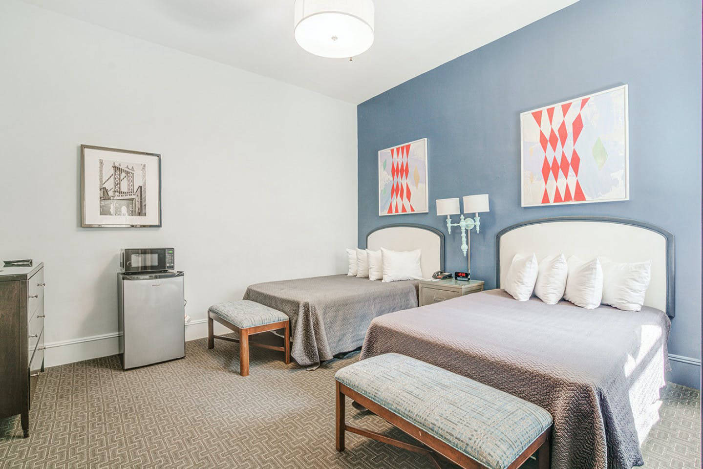 The room comes with two full-size beds, a Smart TV, a Streaming device, and other basic furniture. The following amenities and services are included: