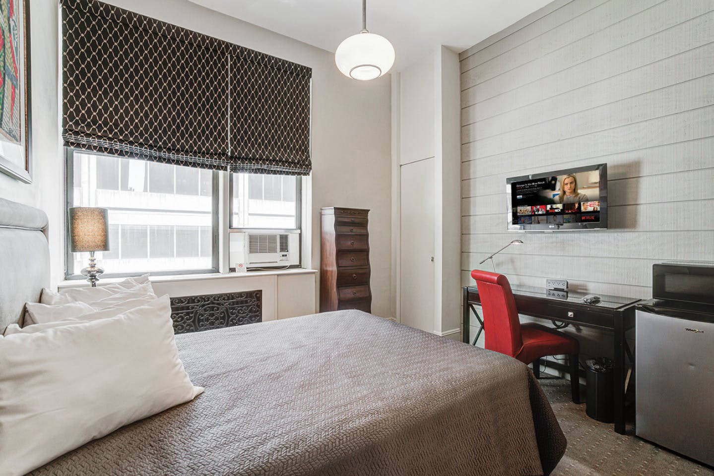 2. Deluxe room is our signature product for luxury living. It provides premium privacy and comfort. It is spacious enough to have a full-size bed, study desk, nightstand, a Smart TV, and a streaming device. This room does not have any drawbacks and has everything you would need in a room. Big windows allow an abundance of natural light to enter the room.