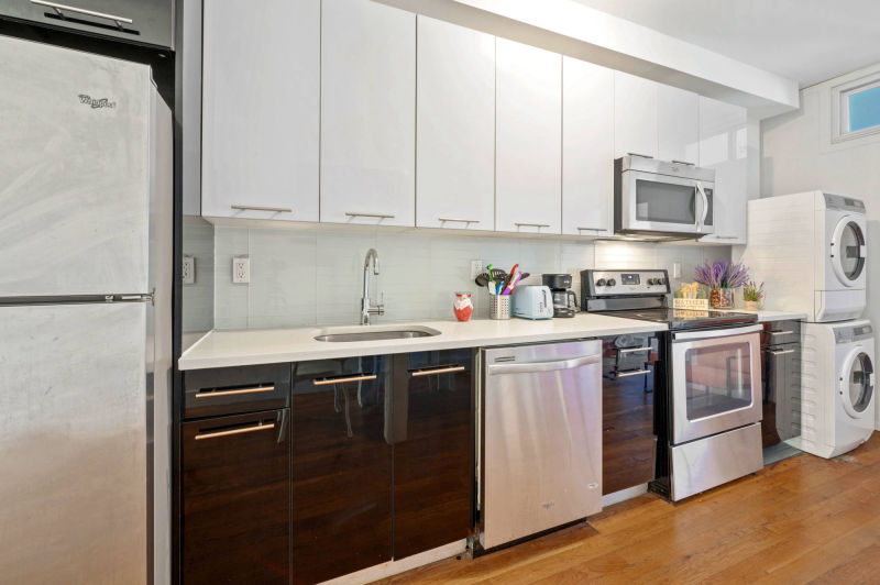 At Lorimer Williamsburg Home, we pride ourselves on providing a hassle-free experience. You can conveniently check-in and out, and we offer various types of rooms at affordable prices. Our living spaces are spacious and modern, with fully equipped kitchens featuring stainless steel appliances like a microwave, gas cooker, toaster, and coffee maker.